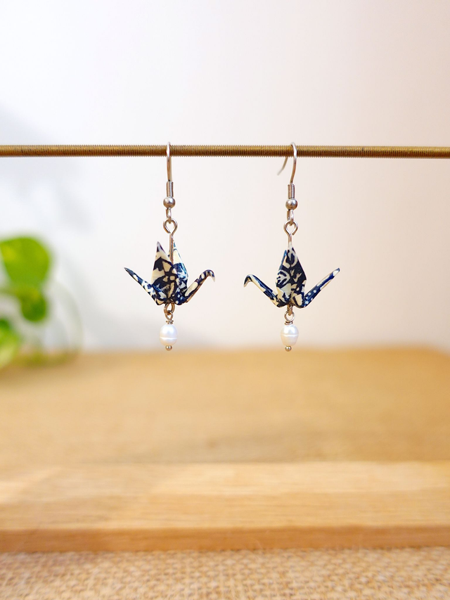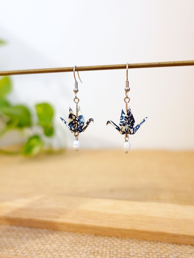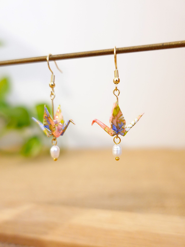 INOX doré / Origami grues, oiseaux / Papier japonais washi / Rose, Bleu, Rouge, or / Boucles d'oreilles origami /