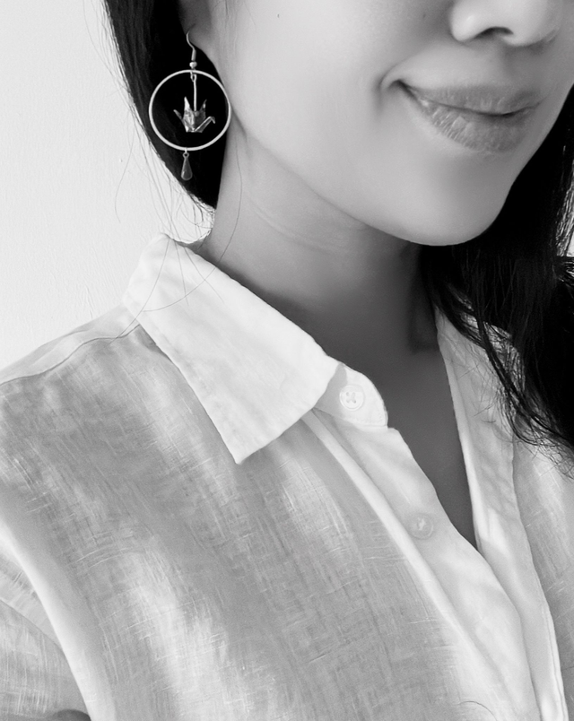 Les boucles d'oreilles en origami sont fabriquées à la main dans mon atelier du Gers.