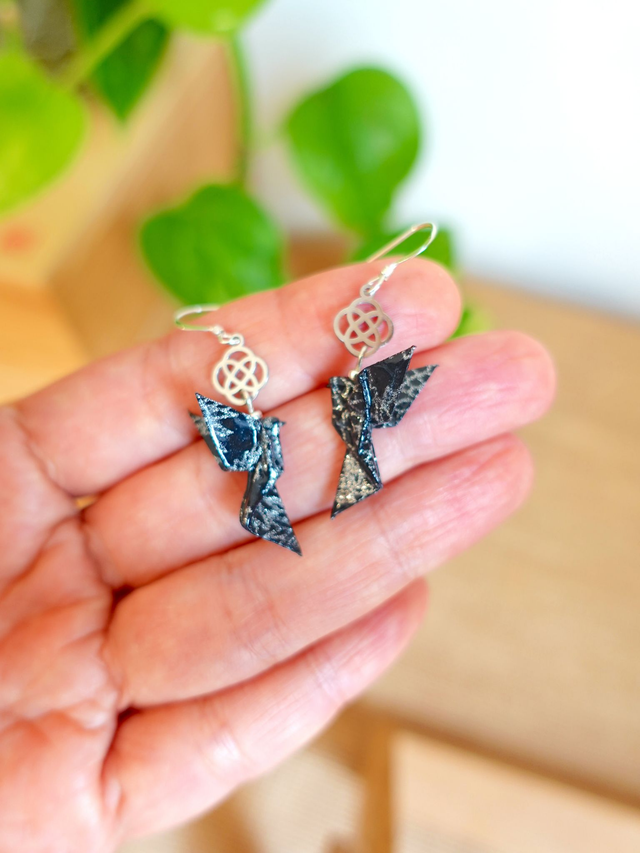 Les boucles d'oreilles en origami sont fabriquées à la main dans mon atelier du Gers.