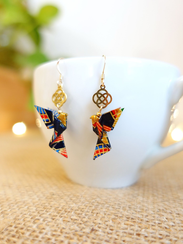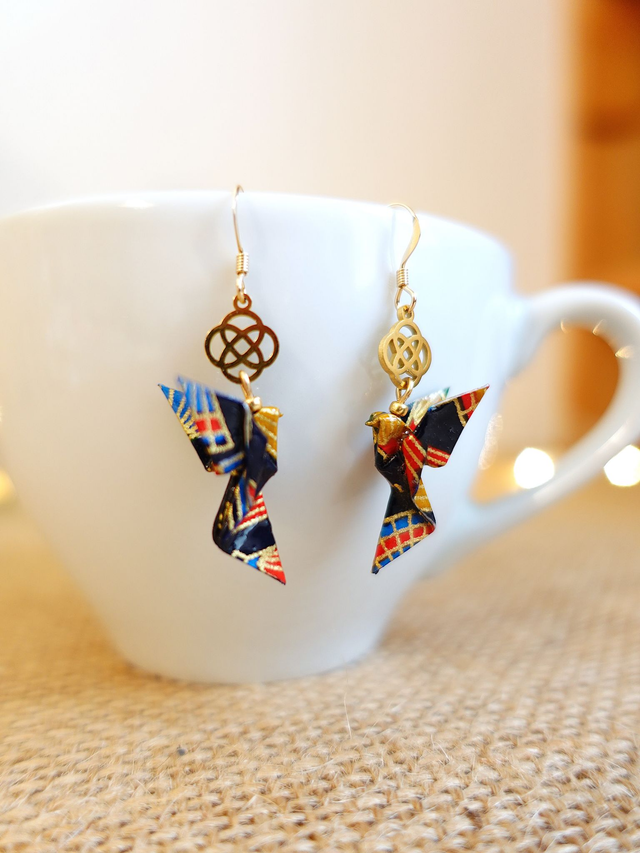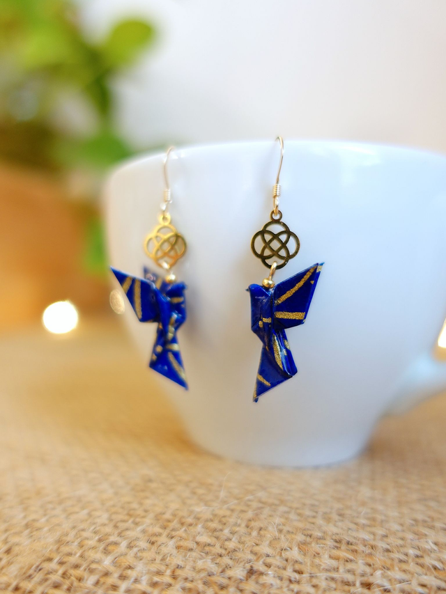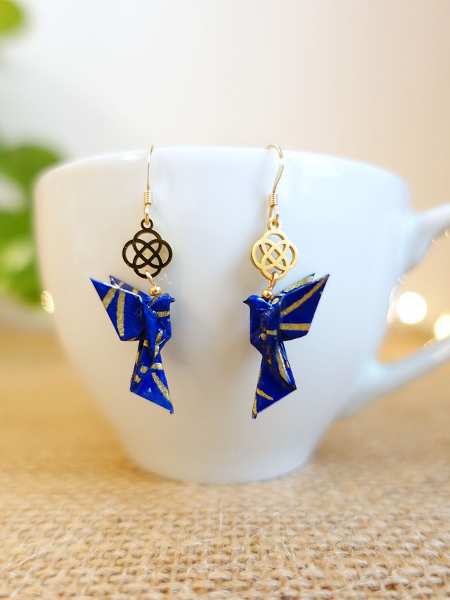 Origami Colombe, oiseau / GOLD FILLED, Or laminé / Boucles d'oreilles / Papier japonais washi / Bleu, or / Bijou japonais origami /