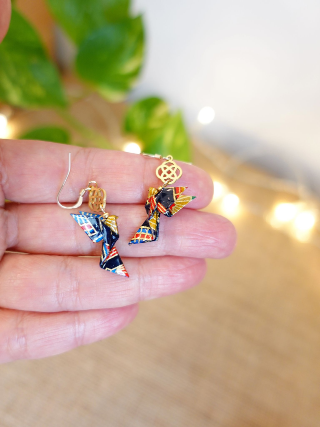 Les boucles d'oreilles en origami sont fabriquées à la main dans mon atelier du Gers.