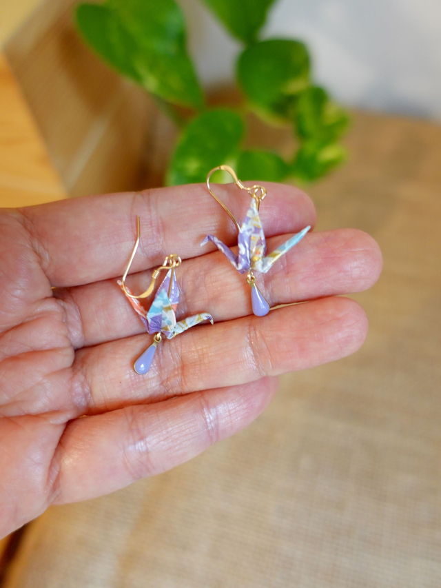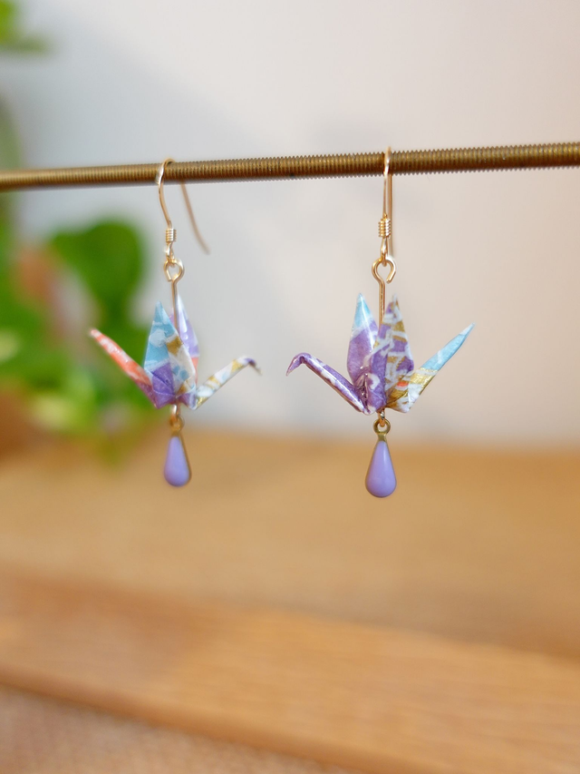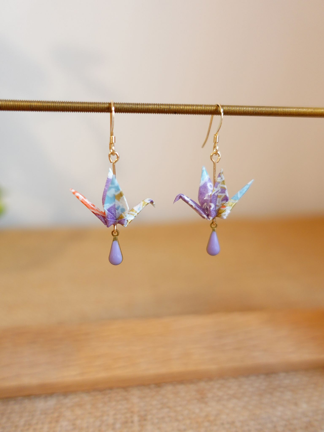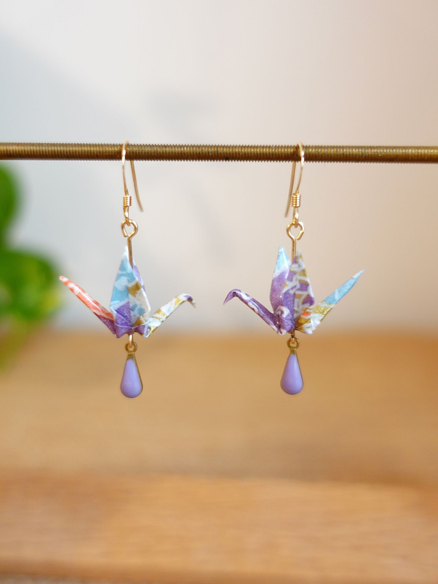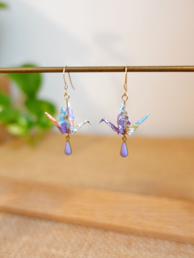 Origami oiseaux, grues / GOLD FILLED, Or laminé / Papier japonais Washi / Violet, or / Boucles d'oreilles / Bijou origami /