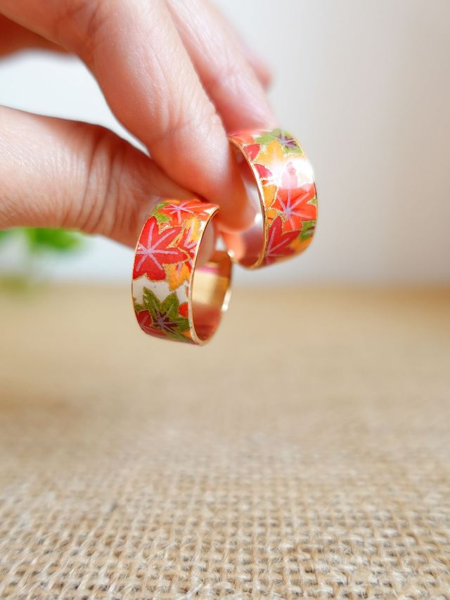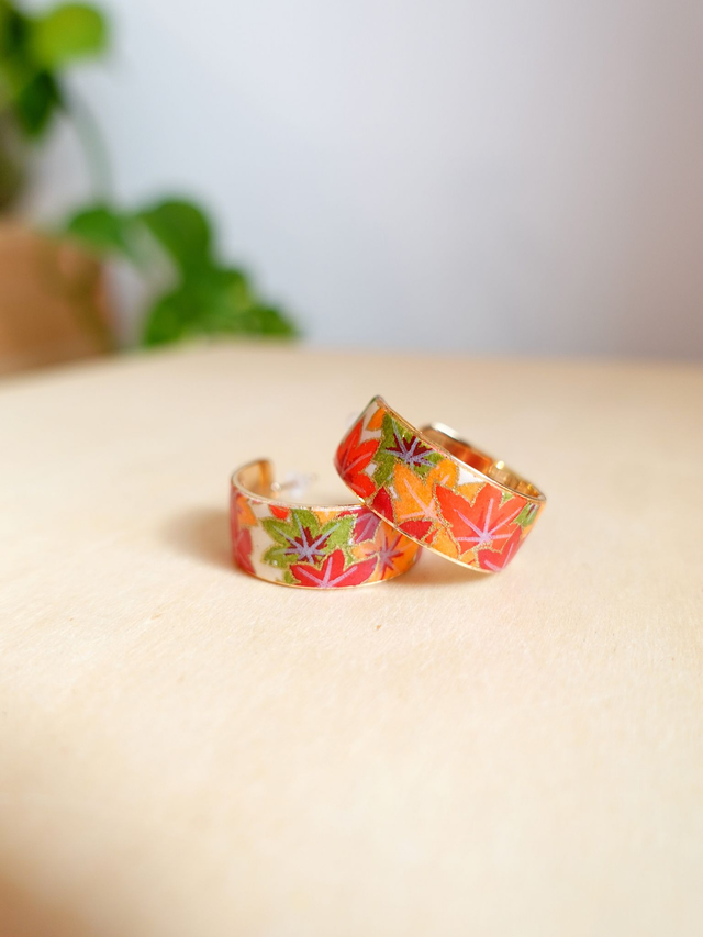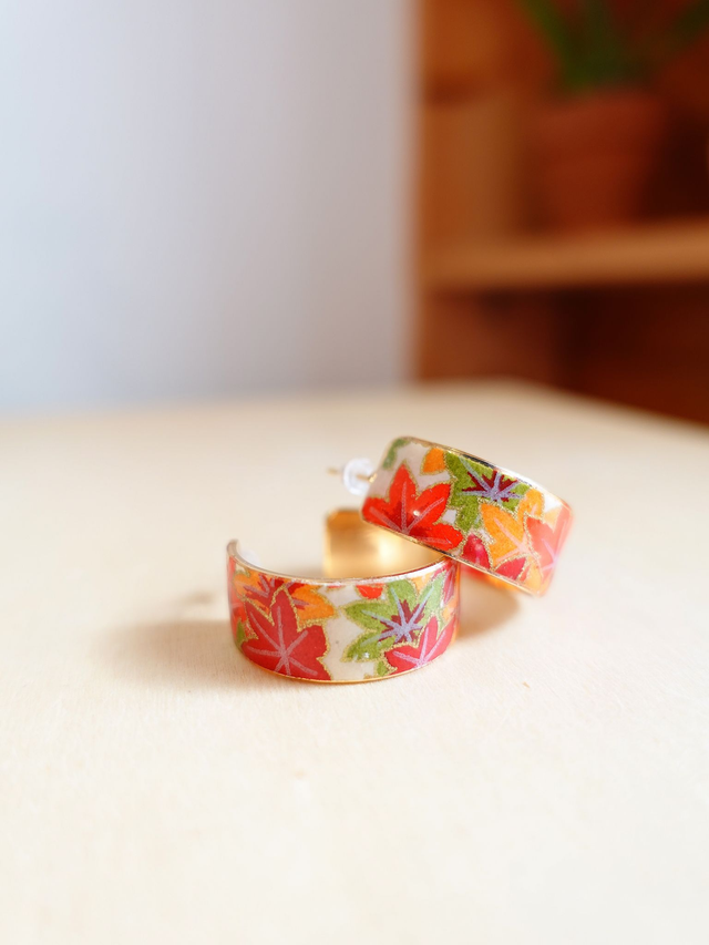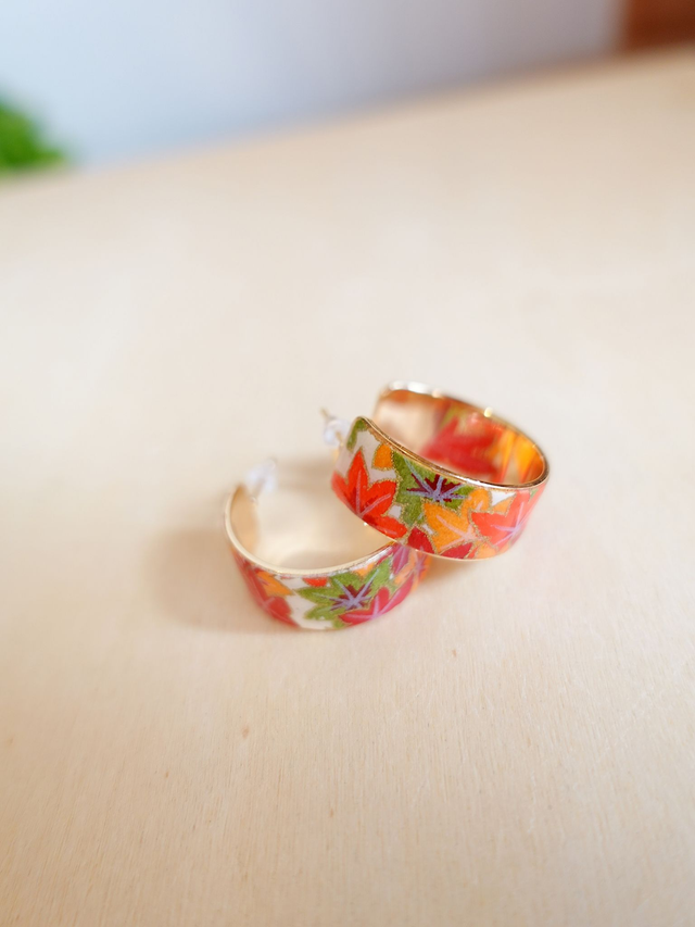 Plaqué or 18k & acier inoxydable / Papier japonais washi / Orange, vert, or / Bijou japonais / Boucles d'oreilles /