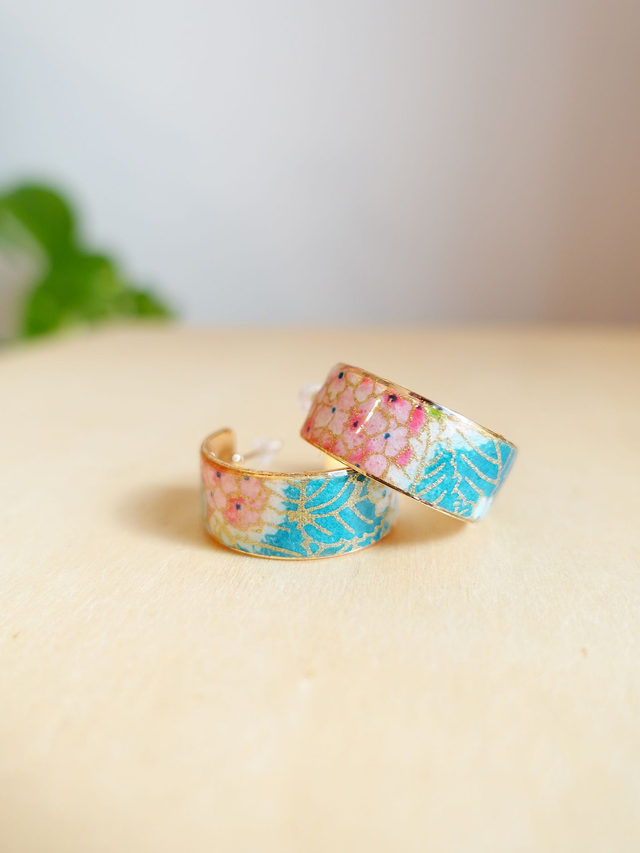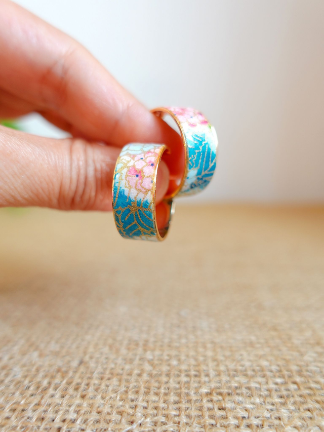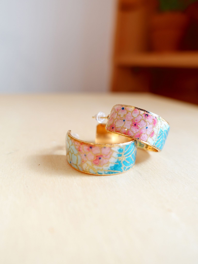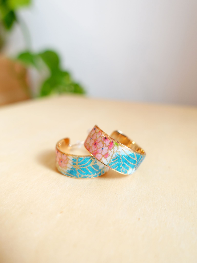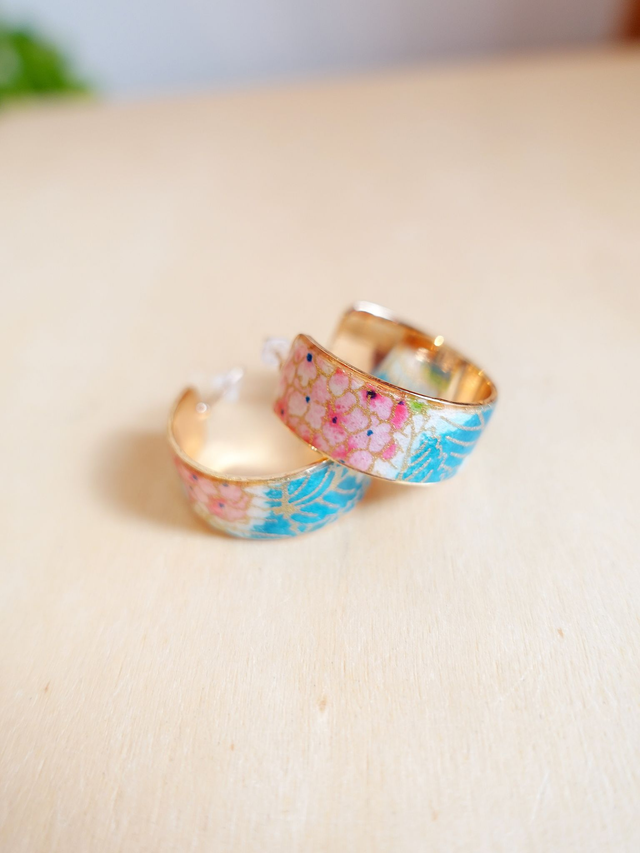 Plaqué or 18k & Inox / Papier japonais washi / Rose, bleu, or / Bijou japonais / Boucles d'oreilles /